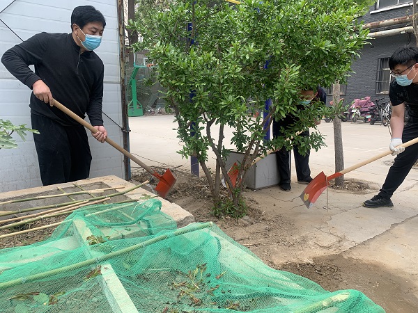 下午一点半,还没到集合时间,党员们已经在办公楼下领取工具,有序排队,整装待发。经过分公司党总支书记孙立锋简单的讲话和小组分工后,大家各自拿着扫帚、铁锹等工具投入到负责的区域。首先大家对院内路面、绿化带、车棚、门厅、大门洞等区域进行了打扫和清理。劳动过程中,分公司班子成员分成四队,孙立锋带头负责打扫职工活动室周边以及车棚的犄角旮旯,主任会计师孙春泉带头负责打扫办公楼东侧死角位置,开发副经理高青带头打扫楼后狭窄过道,主任经济师孔艳艳带头擦拭门洞宣传栏、清理花池中的枯枝、杂草。长期“饱经风霜”的门洞宣传栏一层尘土,孔艳艳全然不顾尘土飞扬,踩着凳子擦拭高处。在清理车棚卫生时,为达到更好的清理效果,需要将每辆车移位,搬动电瓶车是个力气活,开发科科长许茂茂带头,将电瓶车一一来个“平稳大挪移”,清出垃圾后车辆重新摆放整齐。