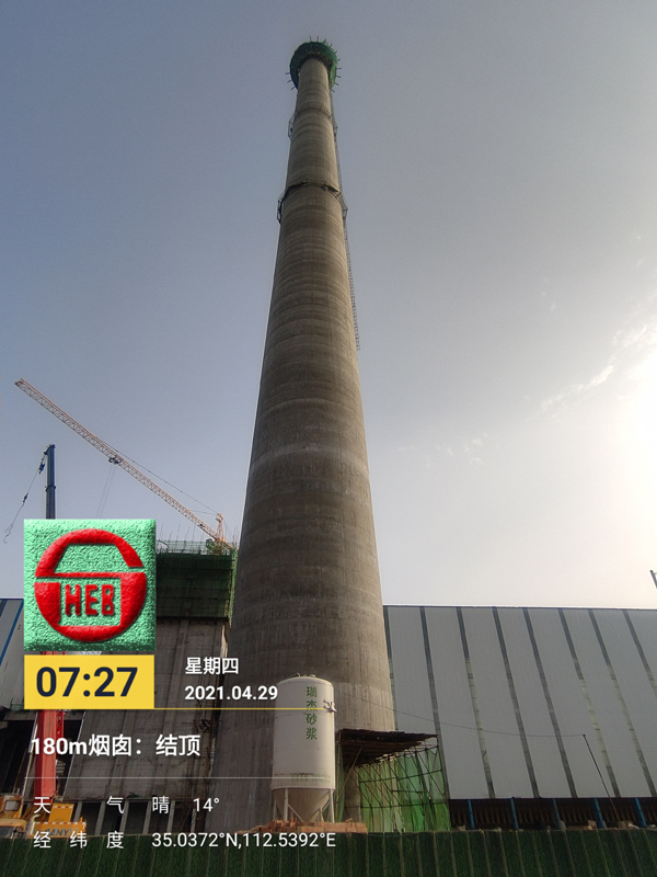 429日,六分公司河南金马项目部完成了关键施工节点——180m烟囱土建工程顺利结顶,刷新了河南省济源市最高建(构)筑物纪录
